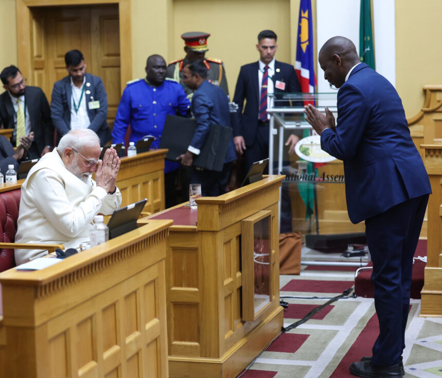पांच देशों की यात्रा के अंतिम चरण में नामीबिया में प्रधानमंत्री नरेंद्र मोदी का न सिर्फ गर्मजोशी से स्वागत किया गया बल्कि उन्हें नामीबिया के सर्वोच्च नागरिक सम्मान ‘ऑर्डर ऑफ द मोस्ट एंसिएंट वेलविचिआ मिराबिलिस’ से सम्मानित किया गया। राष्ट्रपति नेटुम्बो नंदी-नदैतवाह ने प्रधानमंत्री मोदी को यह सम्मान प्रदान किया। प्रधानमंत्री ने इसे गर्व का क्षण बताया। उन्होंने 140 करोड़ भारतीयों की ओर से यह सम्मान ग्रहण किया।