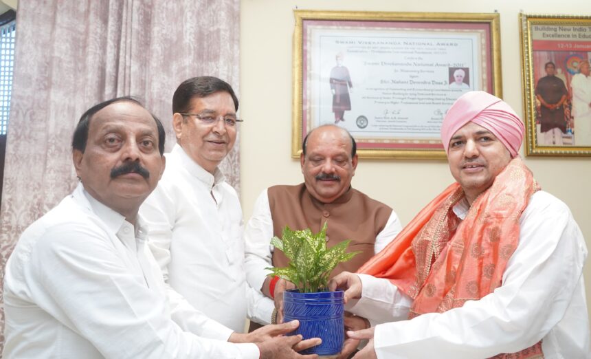 TAGGED: and discussing further development in remote areas., Chakrata MLA Pritam Singh led a Congress delegation to meet SGRR Mahant Devendra Das, praising SGRR institutions for their work in health and education