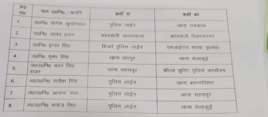 Reading: देहरादून पुलिस विभाग में बड़ा फेरबदल, कई निरीक्षक और उप निरीक्षक बदले गए