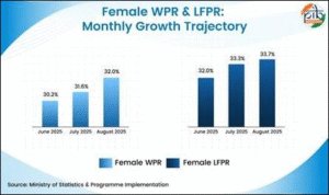 हालिया आंकड़ों में, जुलाई 2025 में WPR 31.6% और LFPR 33.3%, जबकि अगस्त 2025 में क्रमशः 32% और 33.7% दर्ज की गई। EPFO के पेरोल में 2024-25 में 26.9 लाख नई महिला सदस्य जुड़ीं, जो औपचारिक रोजगार में महिलाओं के बढ़ते कदम का संकेत है।