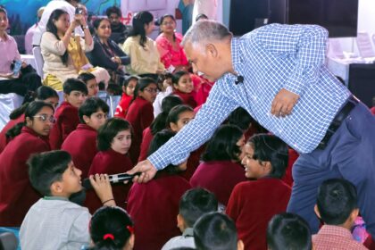 बच्चों ने राजेश पांडेय से सुनी ‘पेड़ घूमने क्यों नहीं जाता’ कहानी
