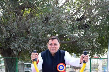 CM Dhami Tries Open Gym Equipment, Plays Cricket in Lohiahead Uttarakhand लोहियाहेड,…